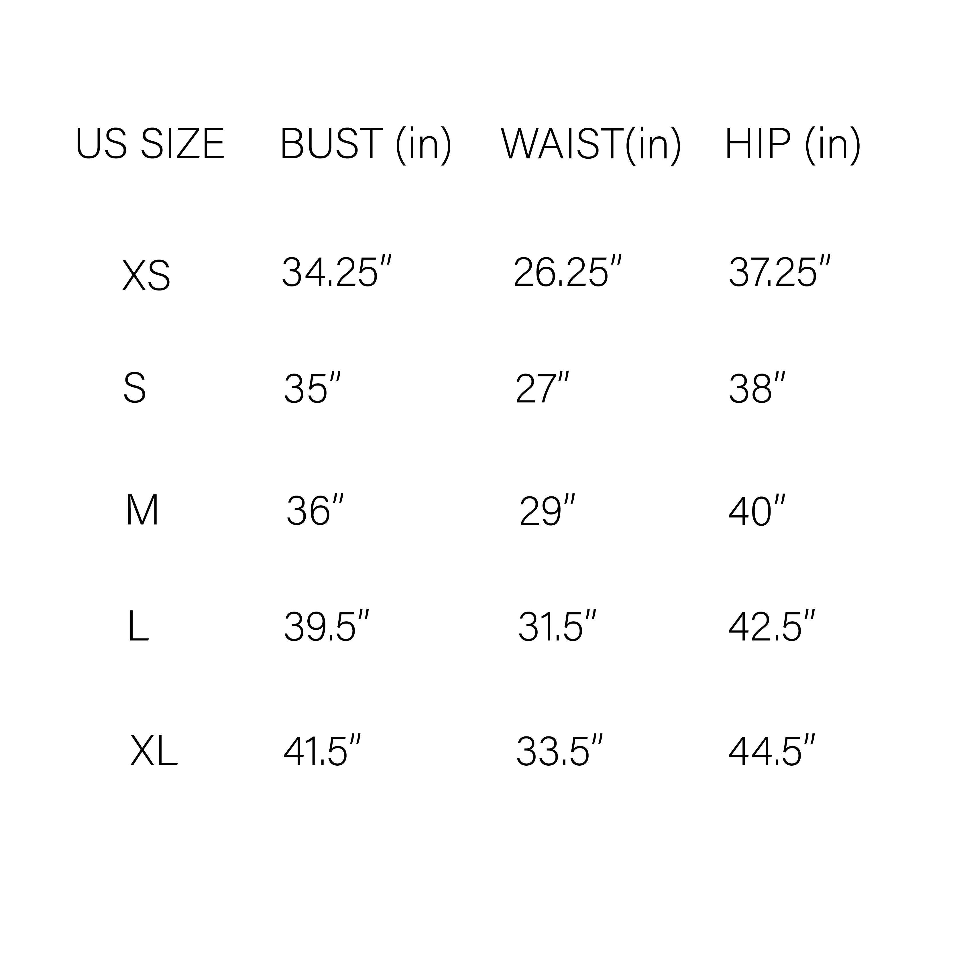 Most of our silhouettes are a bit oversized and flowing. When referencing the size charts below, consider that each of our sizes will fit a range of measurements.